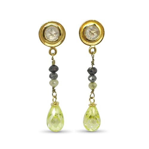 Lesunja Yellow Gold Citrine Doamind Ear Dangle