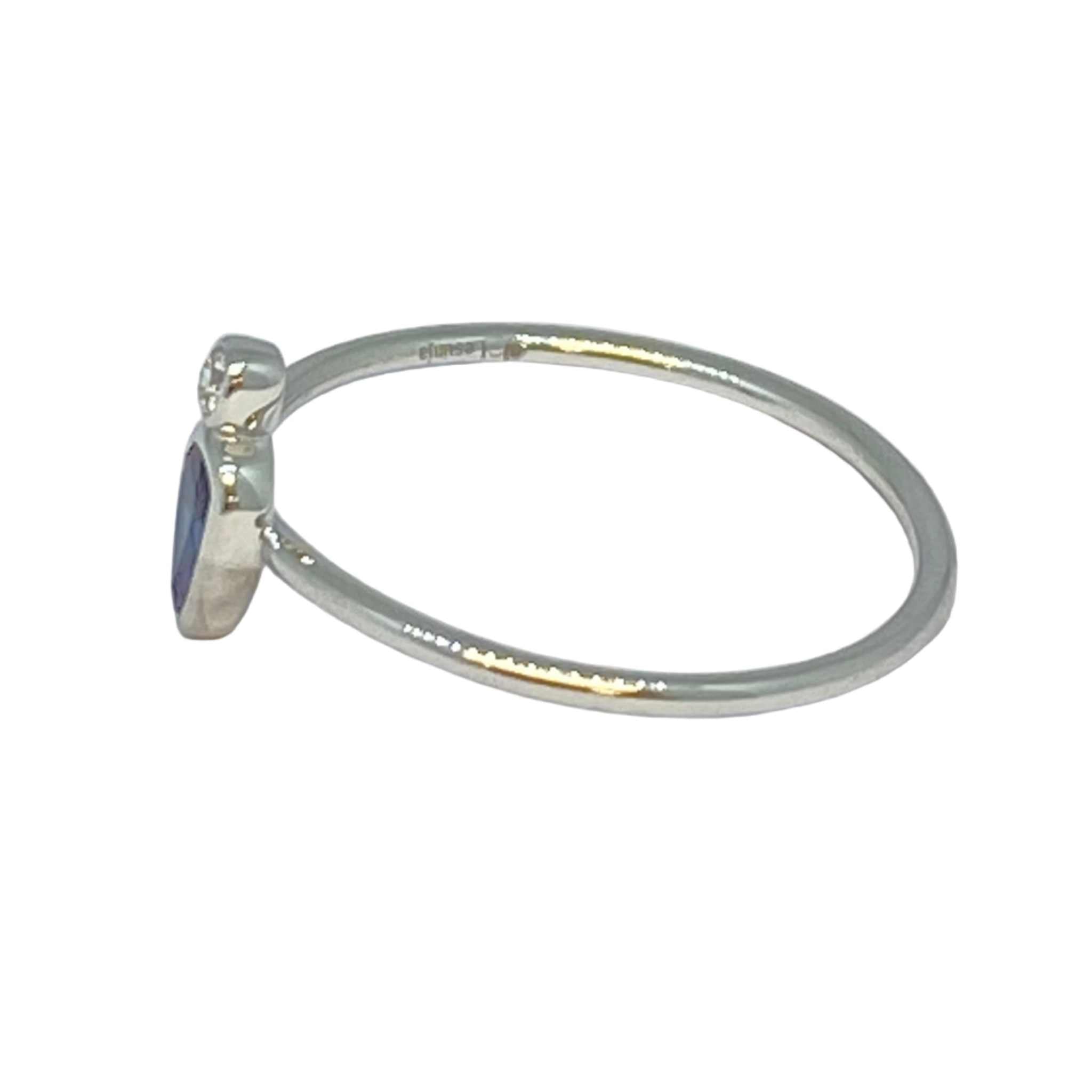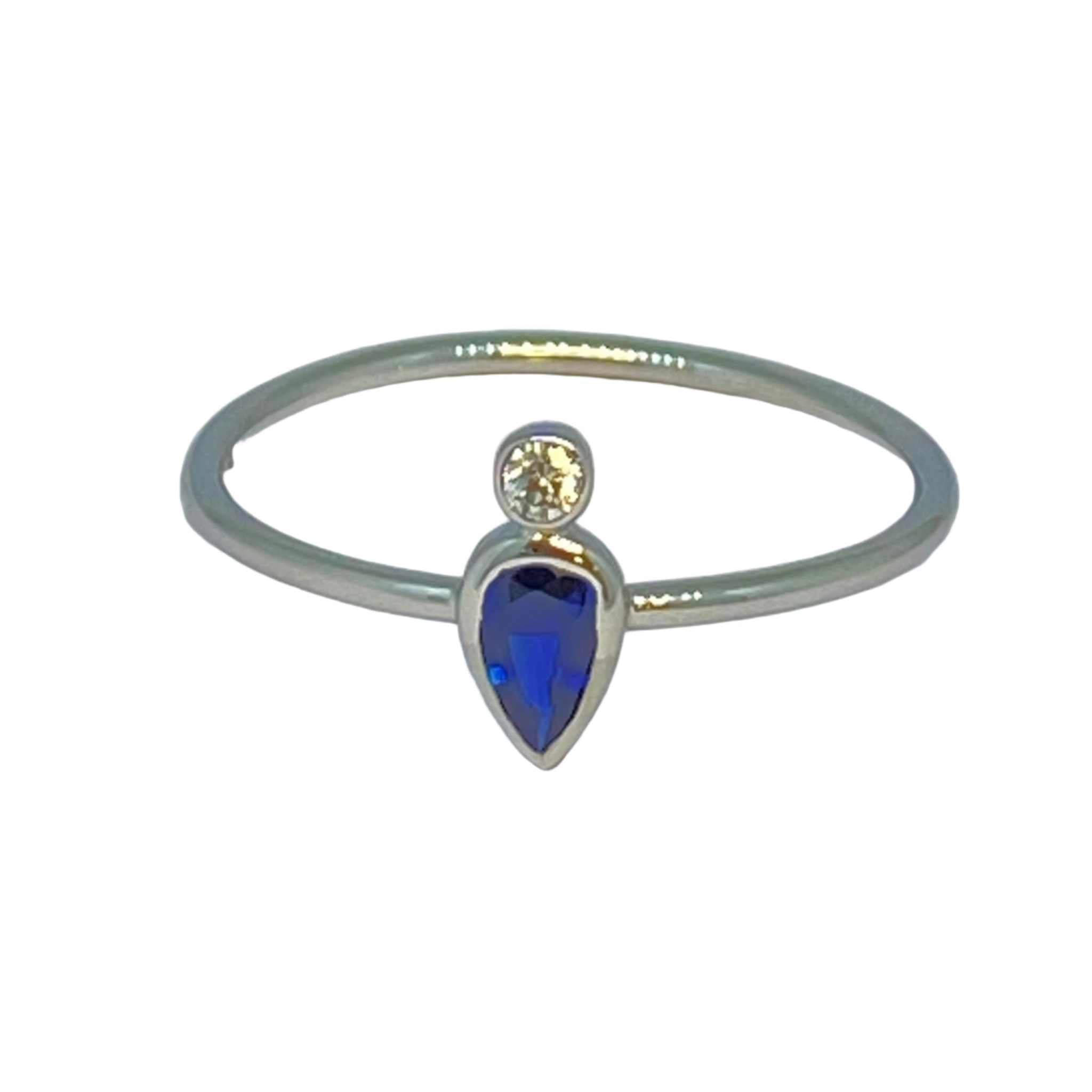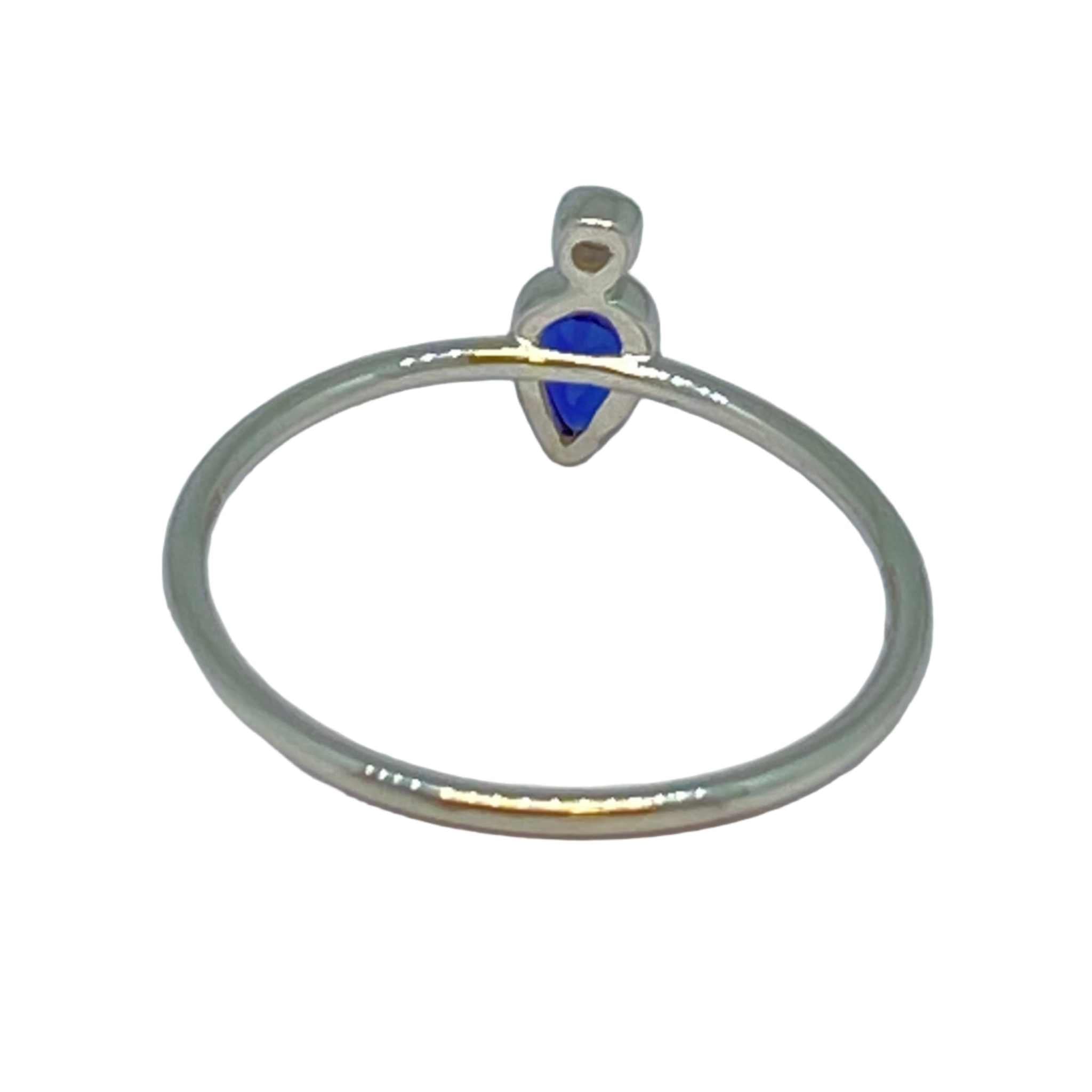An elegant 18k white gold ring featuring a brilliant sapphire and diamond, designed in a size 54.