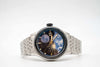 A luxury automatic watch inspired by the Swiss Alps. Features a premium Miyota 9015 movement, 316L stainless steel case (41 mm), flat sapphire crystal, and a dial in natural  black sandstone with a luminous Mountain and  Mother of Pearl moon. Solid 7-link bracelet, 10 ATM water resistance. Limited edition.