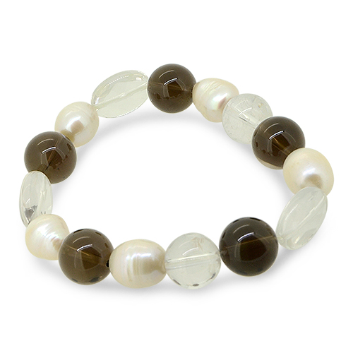 Armband aus Rauchquarz, Bergkristall und Süßwasserperlen