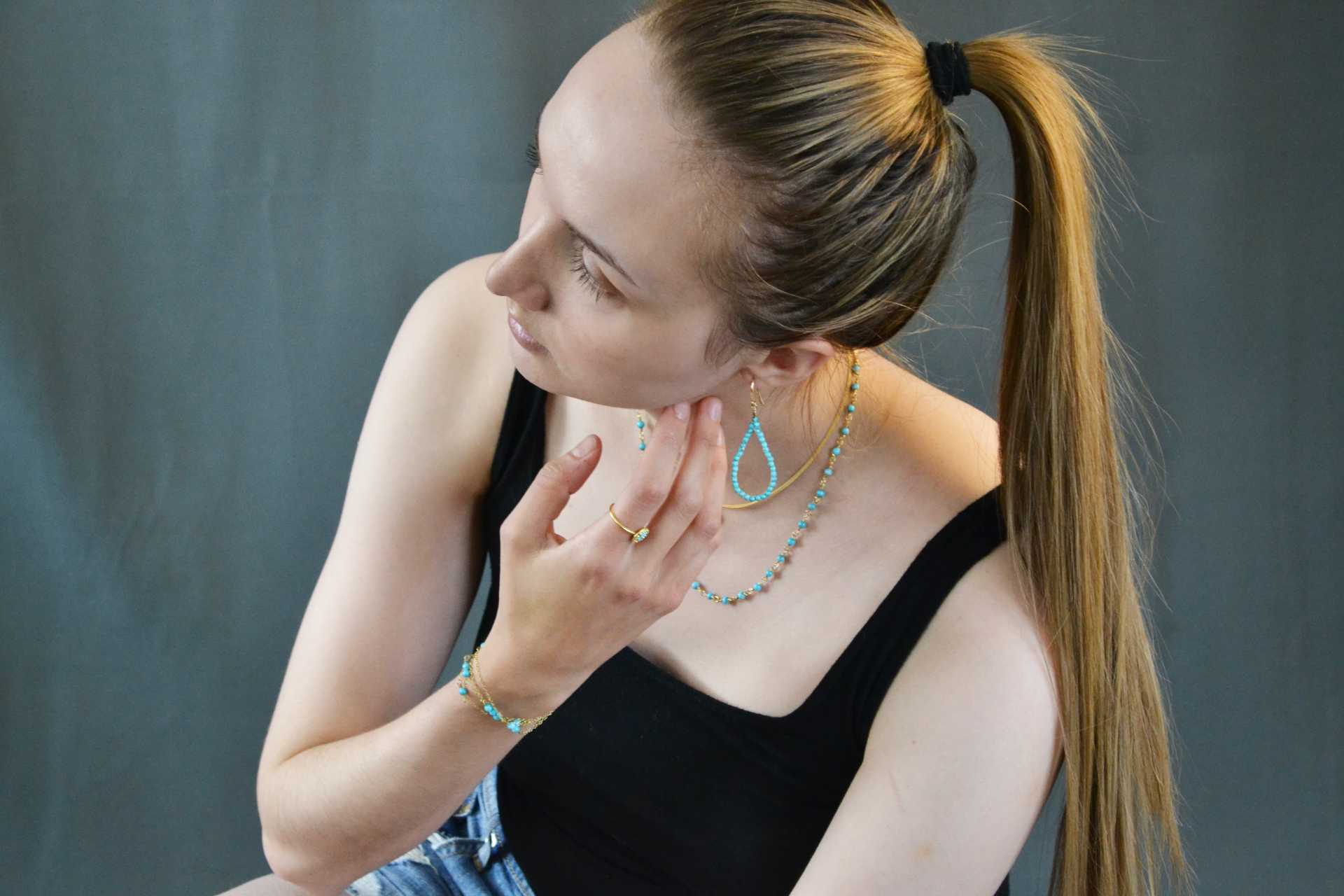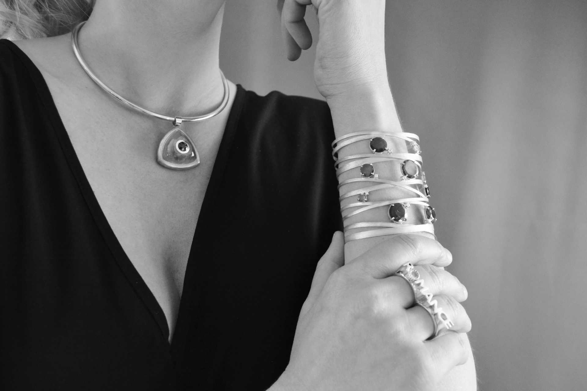 Simple clothes and bam! - A bracelet, a necklace, a ring - With XXL pieces you just have to make sure that the pieces of jewelery harmonize with each other and do not compete with each other. Then your large XXL statement piece really comes into its own and is supported by the smaller pieces of jewelry!