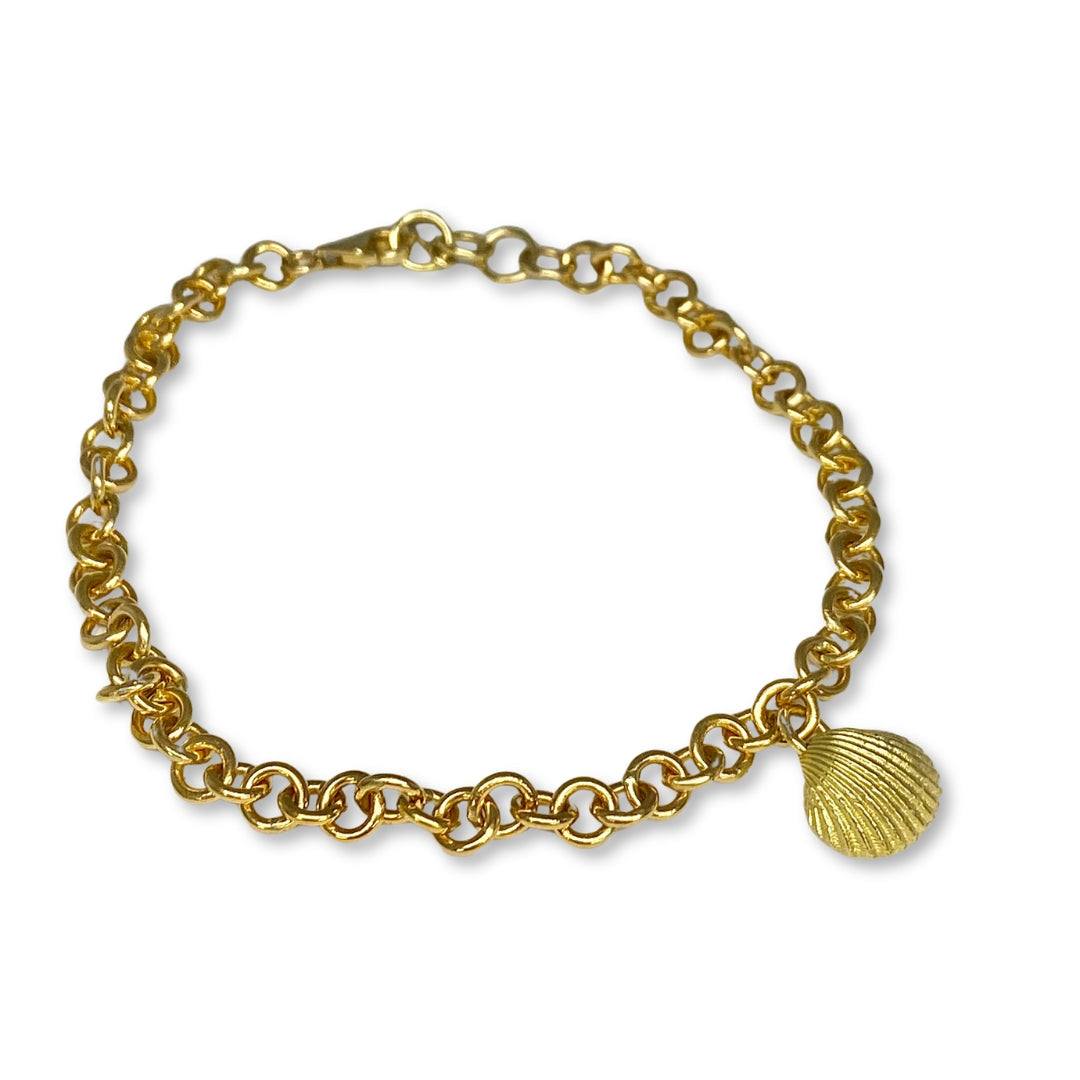 Handgefertigtes Ankerarmband in Gelbgold 750 18K poliert mit einer Muschel